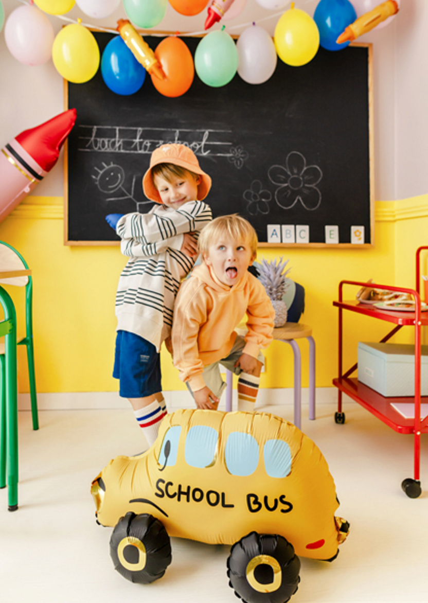 Standing Bus Foil Balloon – Colorful design! Measures approx. 46.5 × 76.5 cm before inflation and 36 × 66 cm after inflation. Designed for air inflation (no helium). Set includes a straw.