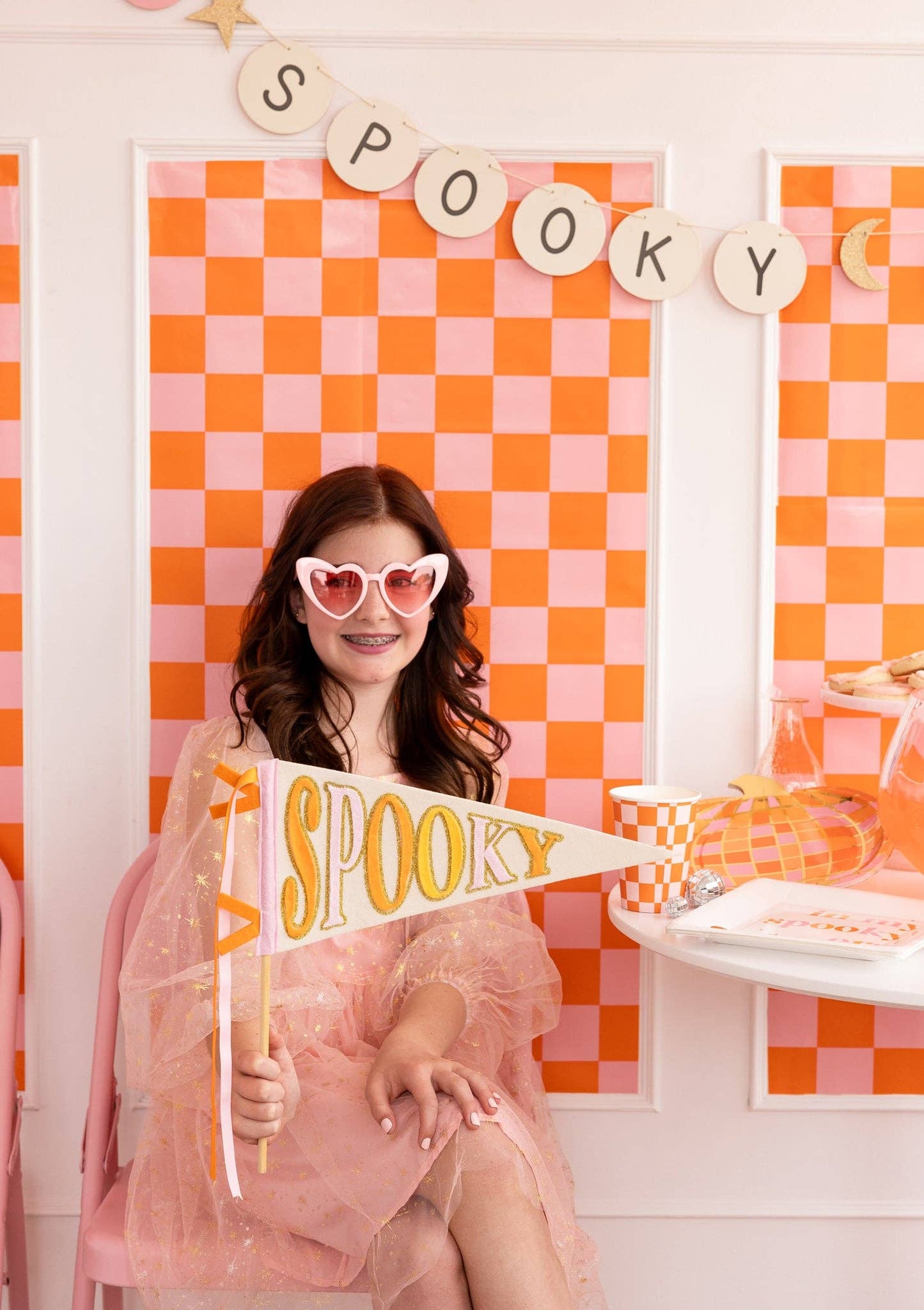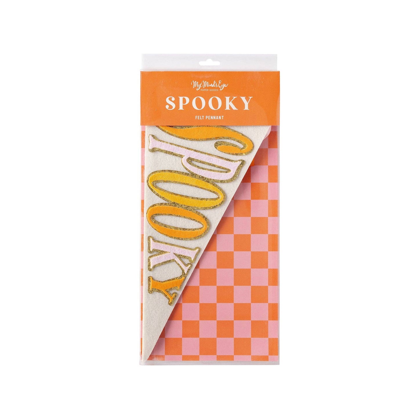 Get ready to spook up your space with our Spooky Felt Pennant! This halloween-themed banner is made of high-quality felt, adding a fun and eerie touch to your decor. Perfect for parties or simply adding a touch of spookiness to your home, this banner is guaranteed to bring a smile to anyone's face!