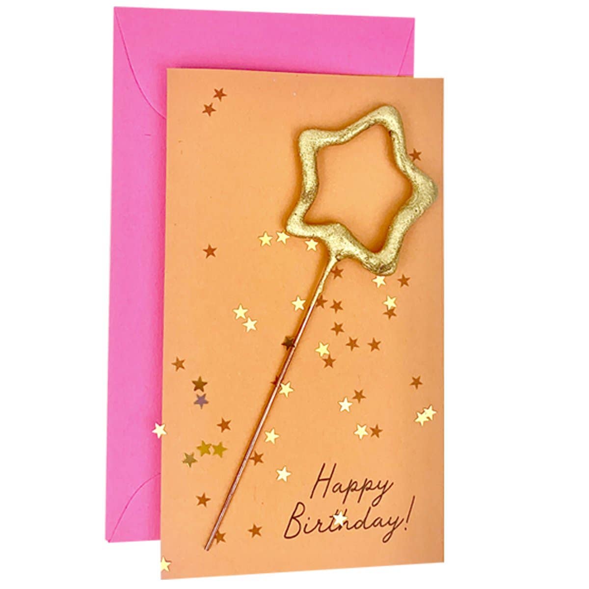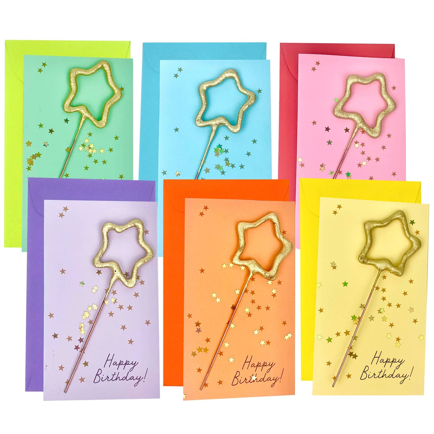 Mini 4" Star Sparkler Card w/ Confetti - "Happy Birthday!"