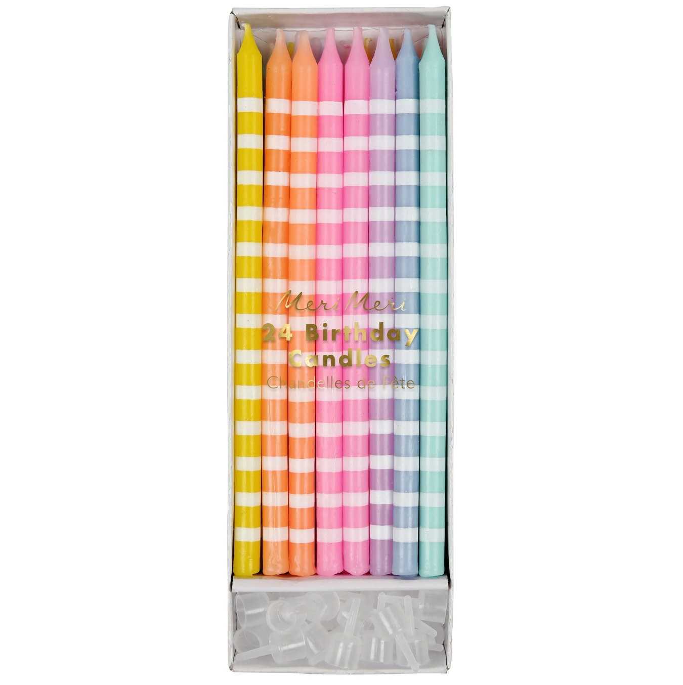 Unwrapping gifts, enjoying cake, and making a birthday wish—some traditions never lose their charm. Add an extra touch of elegance to the occasion with this set of twenty-four beautifully striped candles in six soft pastel shades, perfect for a stylish celebration.