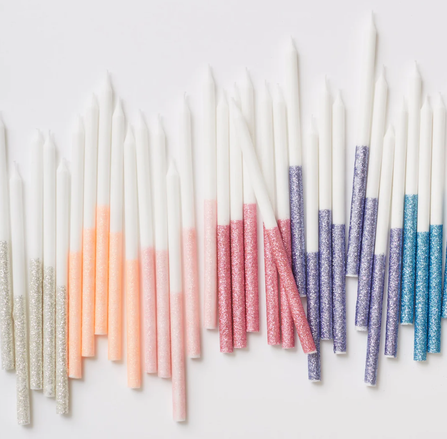 These stunning two-tone glitter candles add a dazzling touch to any special celebration cake, making it truly unforgettable.