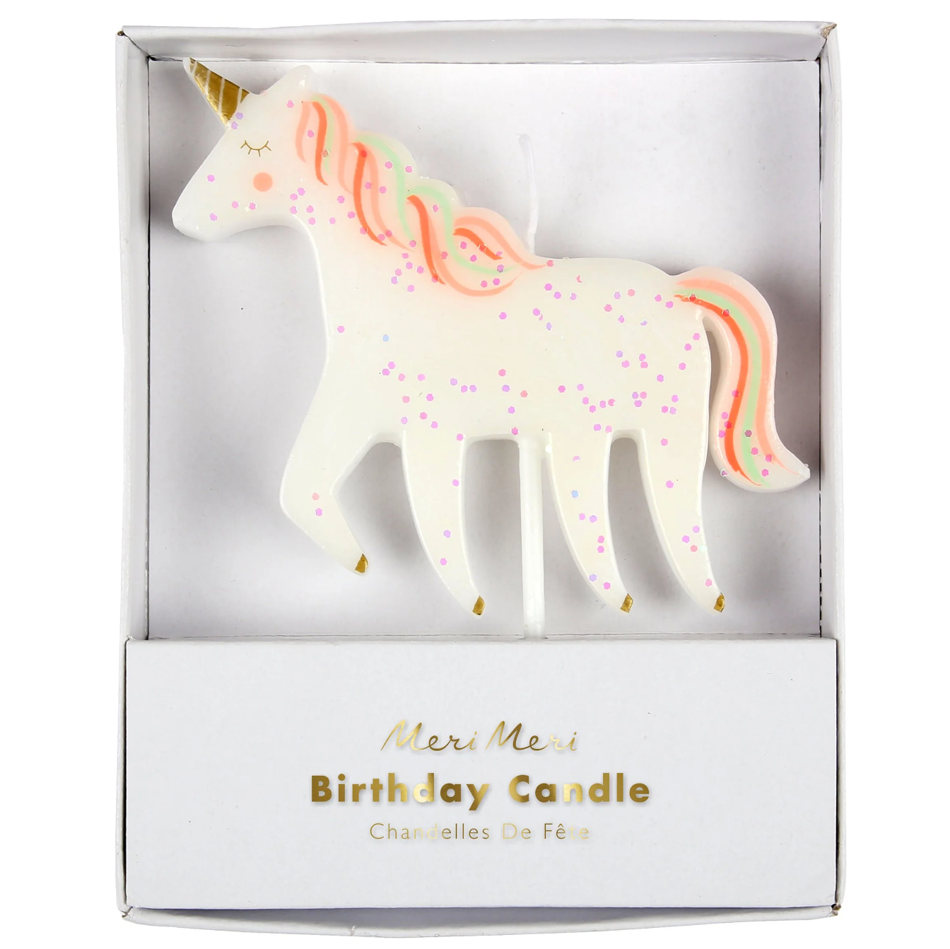 Is it really a celebration at all if no one blows out the candles? Make your special occasion unforgettable with this stunning glittering unicorn candle. Featuring a vibrant mane and tail, it’s beautifully accented with shimmering gold foil.