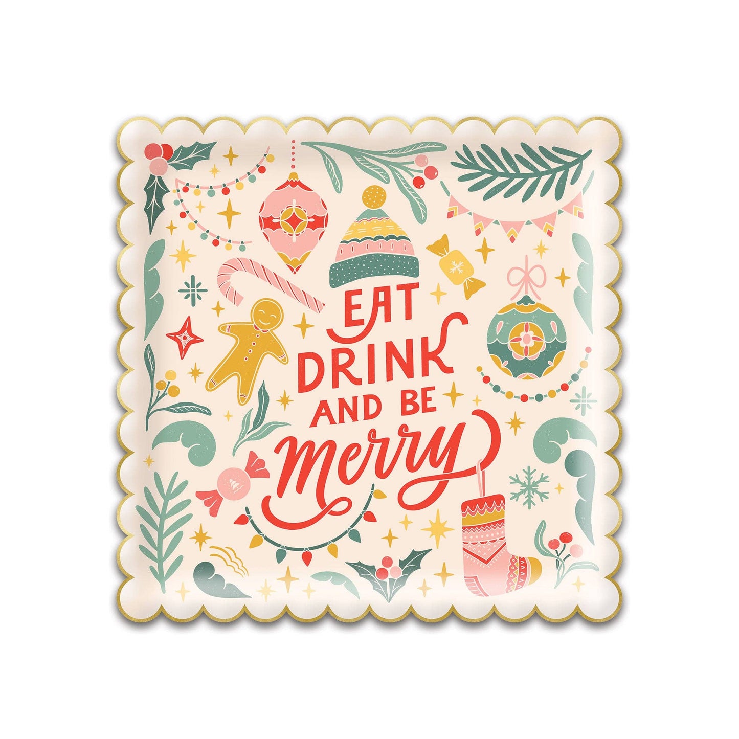 When it is time to eat, drink and be merry this Christmas make sure to bring these fun a festive party plates. With retro holiday flair, these scalloped edges paper plates feature the merry sentiment "Eat, drink and be merry," and fun Christmas icons that will make your table the merriest place to be at your next Christmas party.