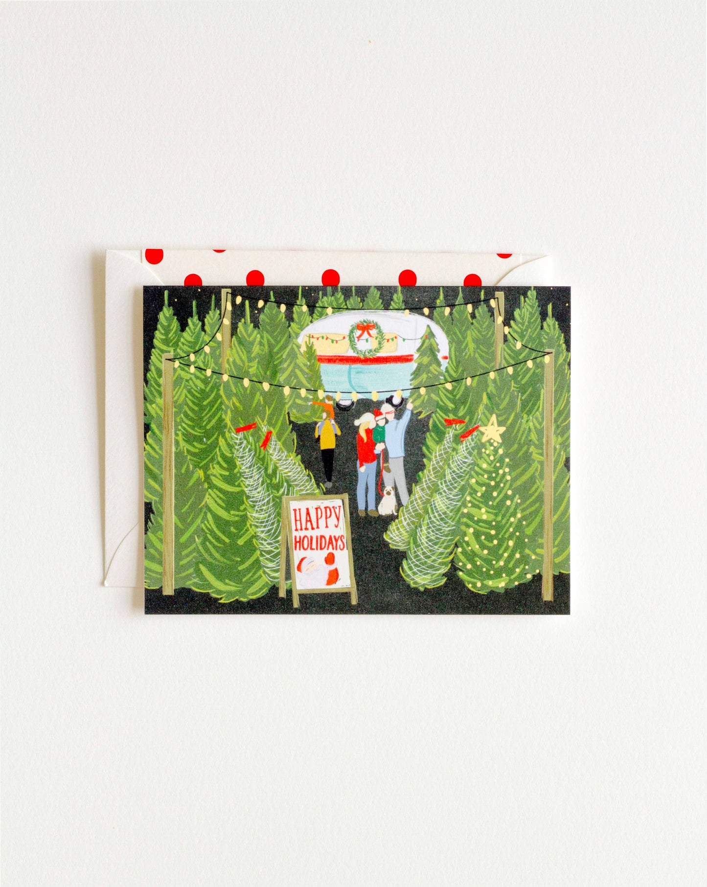 Old fashioned tree lot at night