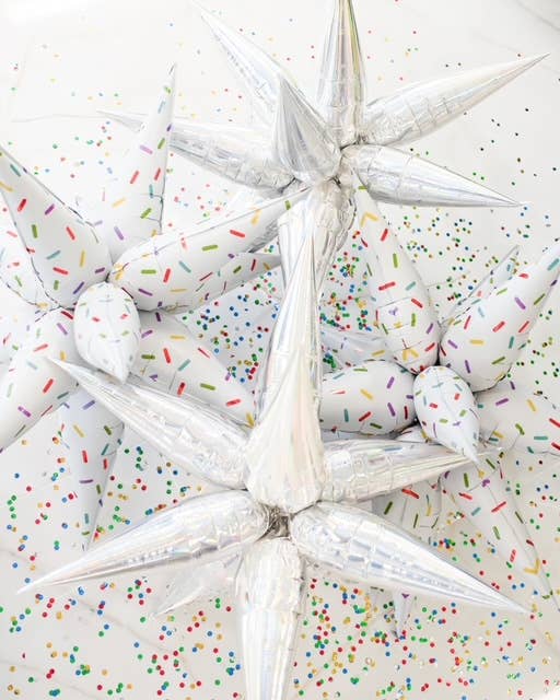 Sprinkle a party with our printed starburst balloon! 12 pieces are all you need to create a party masterpiece. With a white base and multi-colored print, it’s the perfect way to add an extra pop of color to your next event. Air Fill Only!
