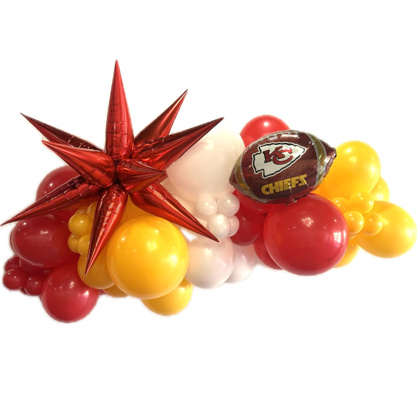 DEFINITELY SOMETHING BIG RED COULD GET BEHIND! APPROXIMATELY A 6FT GARLAND WITH A CHIEFS STATEMENT BALLOON AND A STARBURST.
