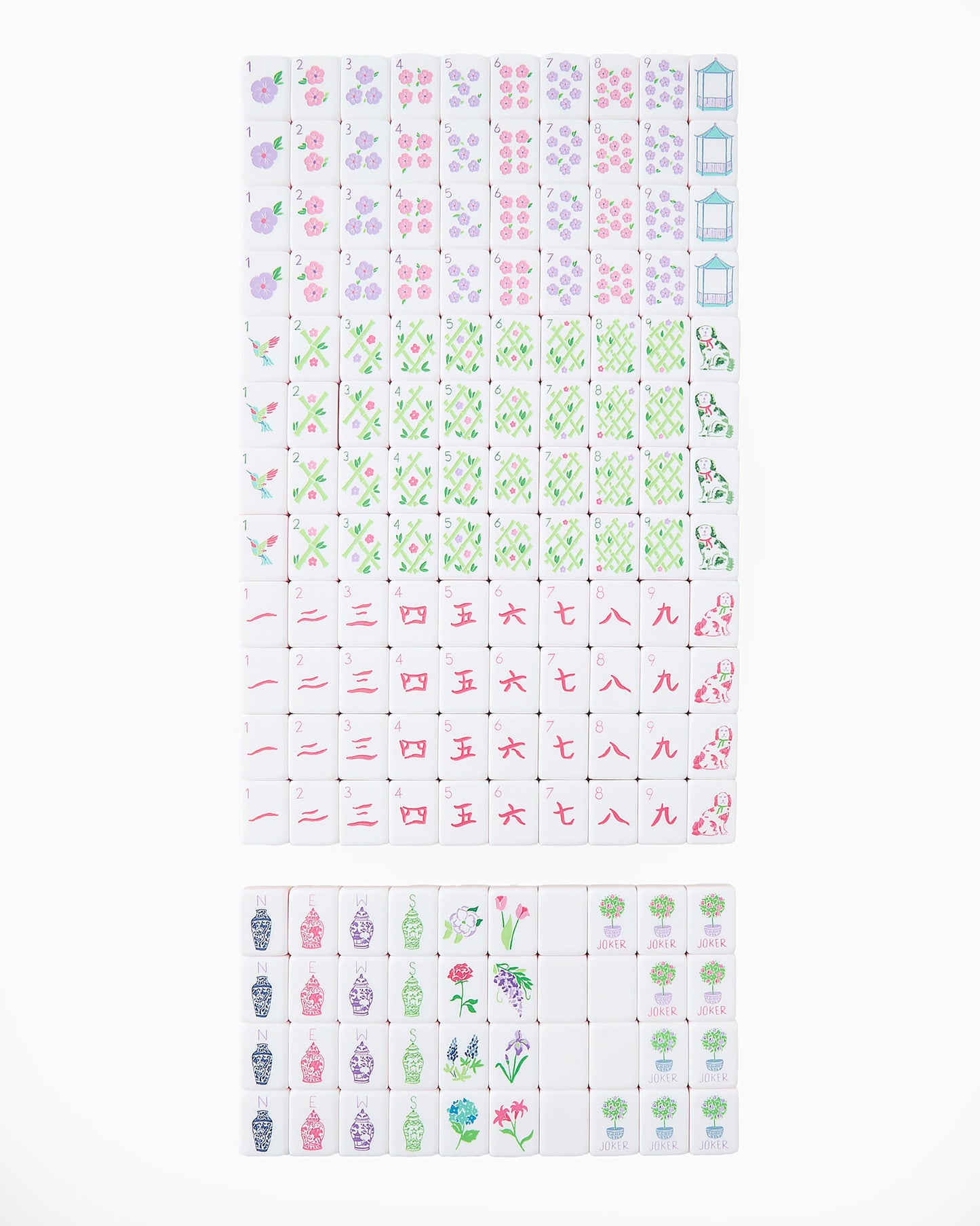 The Taylor Tiles are where punchy pastel hues meet country club sophistication and charm. This captivating collection incorporates a pastel palette appealing to the girly girls and the chic shoppers alike to elevate your Mahjong experience to new heights. Each tile in the Taylor line is meticulously crafted from premium materials, ensuring exceptional quality and countless evenings of elegant and delightful play.