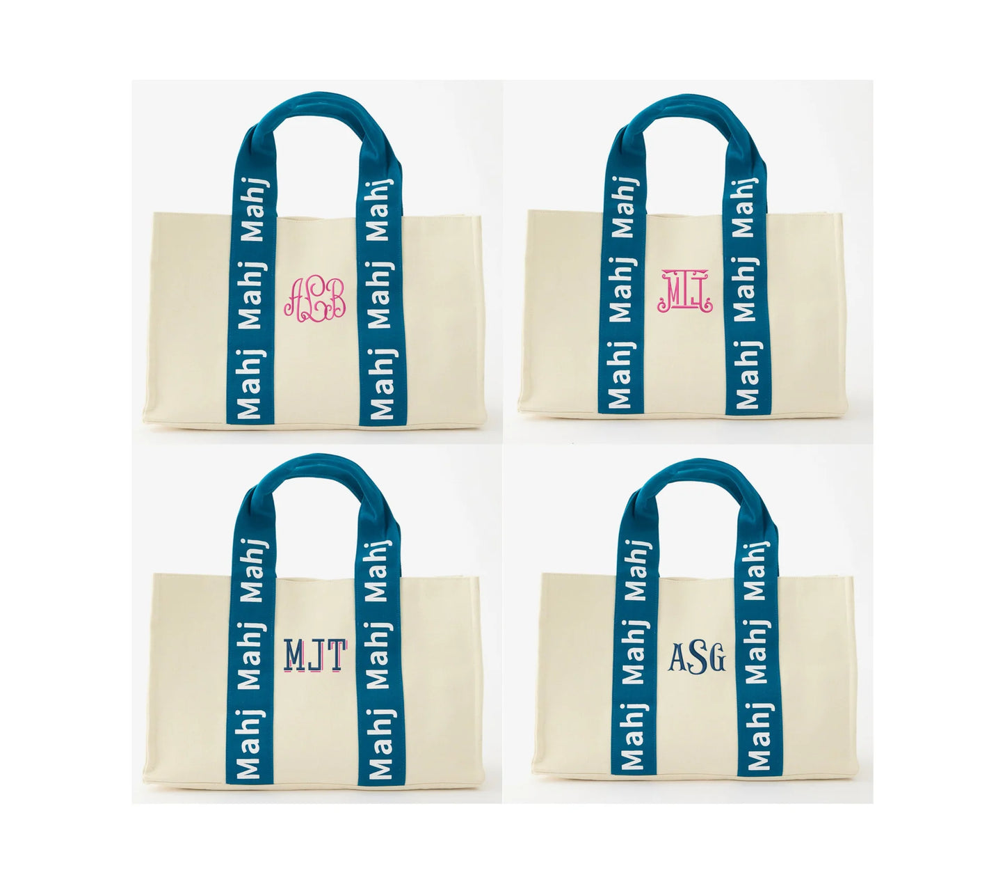 Introducing the Mahj-It-All Bag in a captivating blue teal hue! Lined with a beautiful periwinkle interior, this refreshed canvas storage companion is designed to bring a smile to your face. Not only does it elevate your Mahjong gaming experience, but it also doubles as a fantastic work bag.