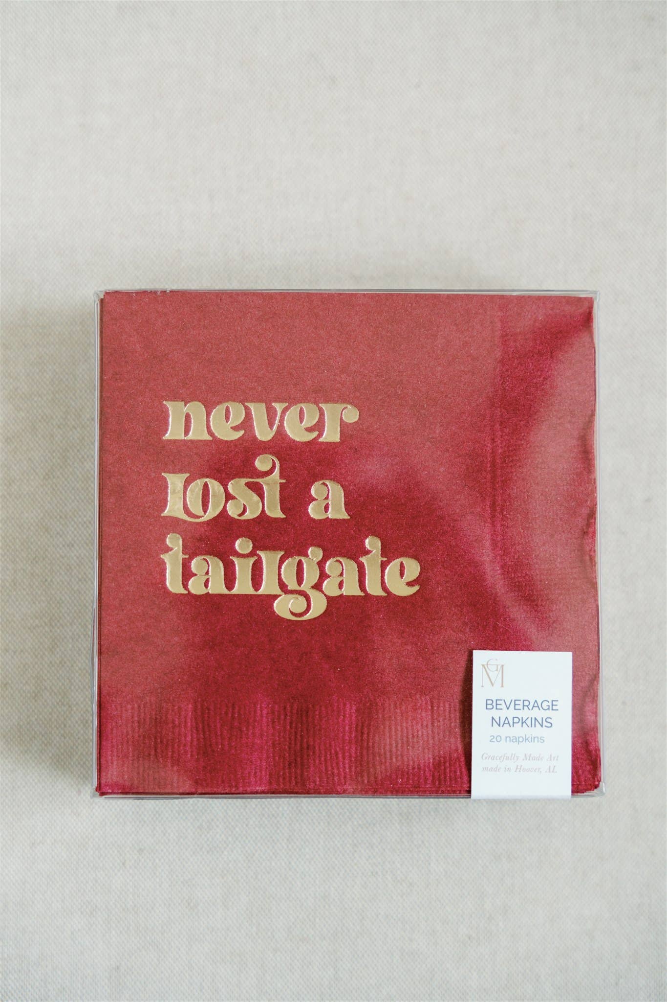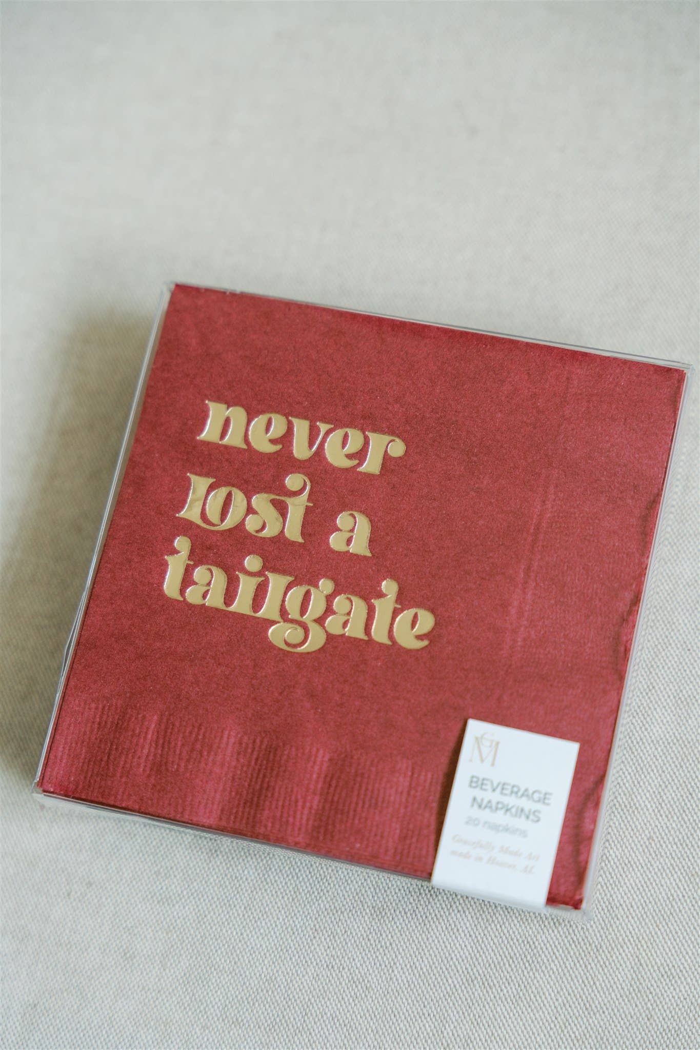 Tailgate, never lost a tailgate, napkins, beverage, collegiate, Alabama, Oklahoma, Georgia, UGA, Bama, football, sports