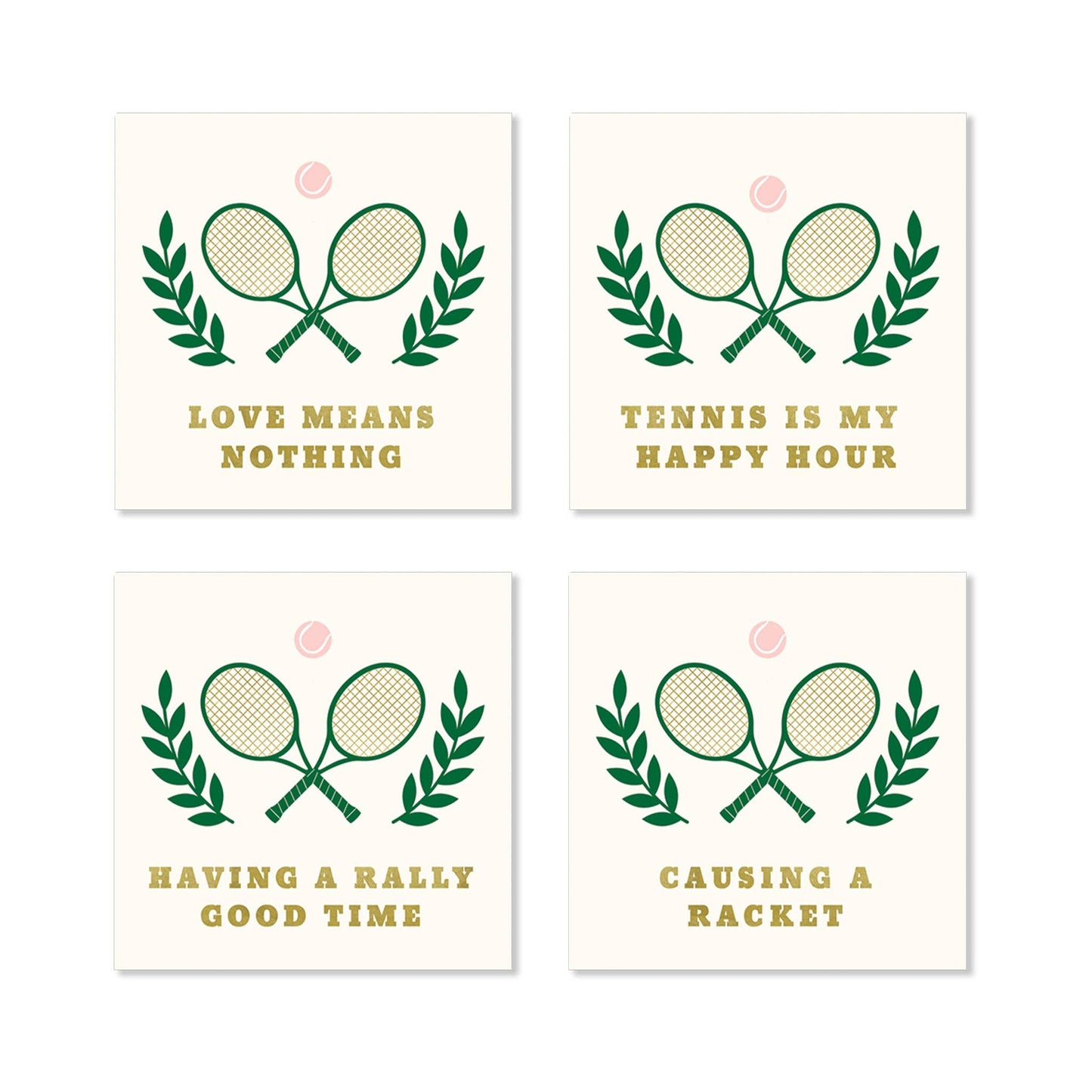 Serve up some fun with our Tennis Sayings Napkin Set! These cocktail napkins feature festive tennis phrases that will have your guests serving laughs all night long. Perfect for any tennis lover's party or event. Ace your hosting game with these napkins!