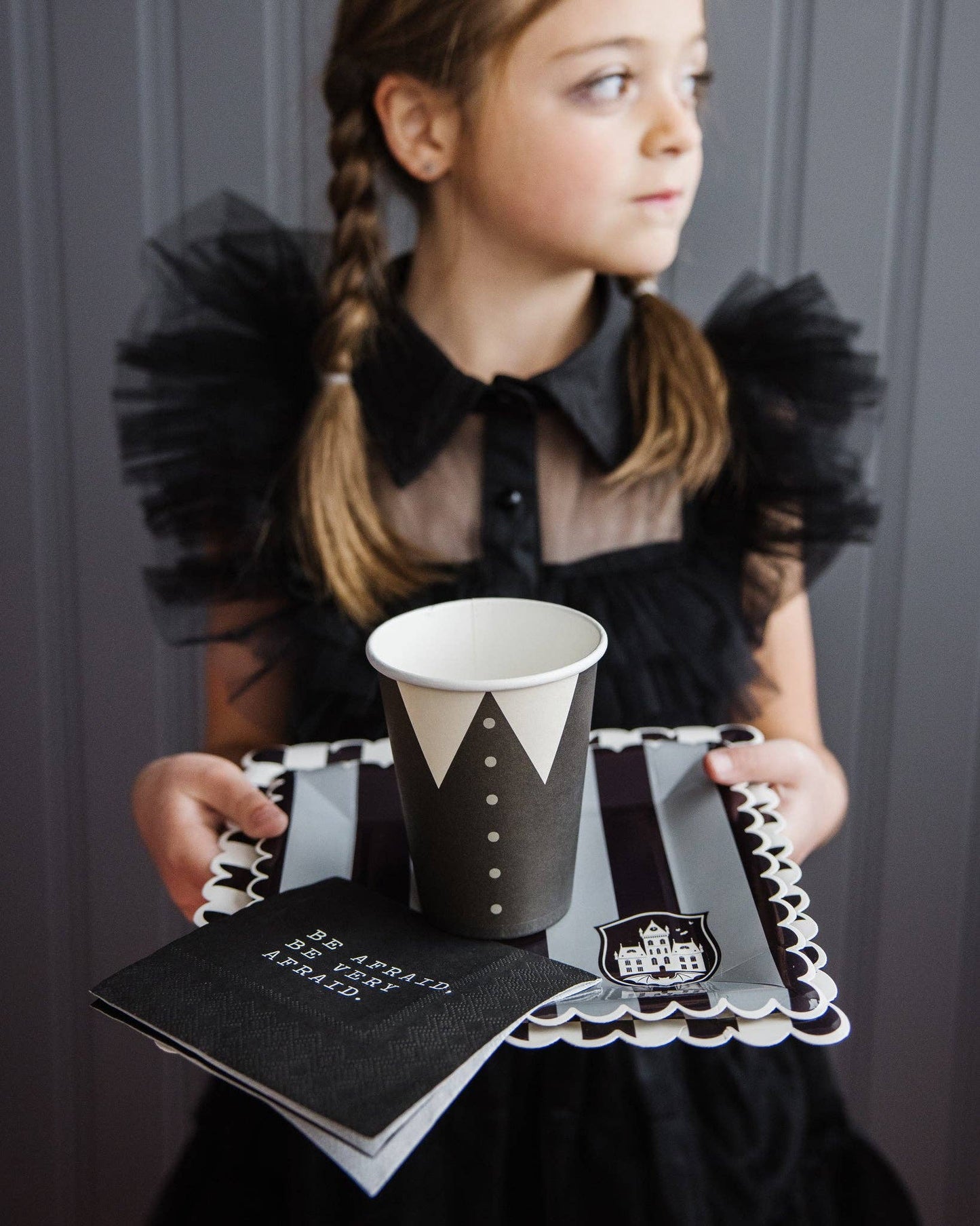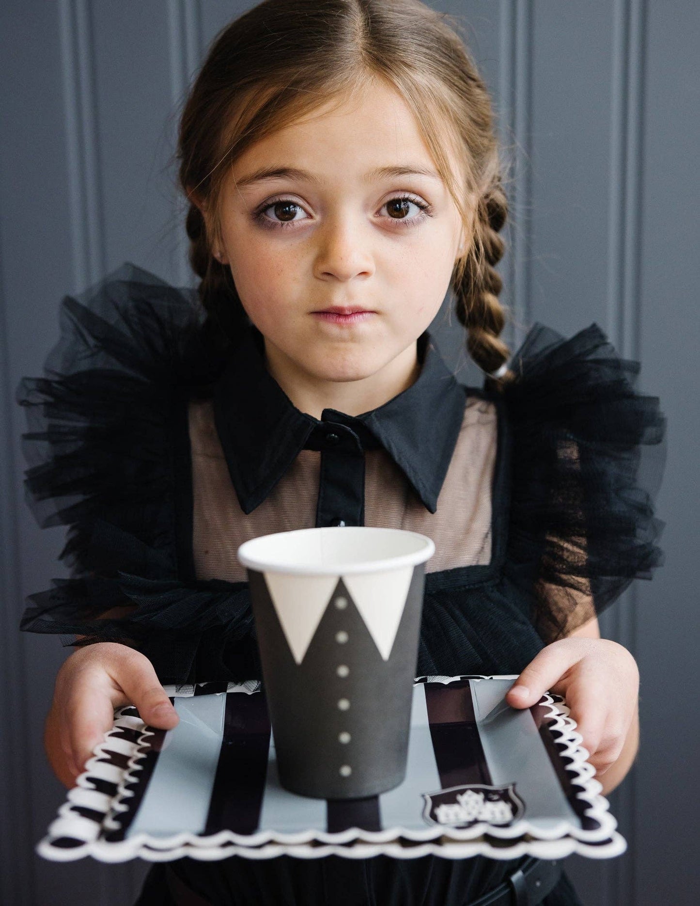 Spooky stories need spooktacular tableware, and these dinner sized scalloped plates are just the thing. Featuring a black and white checkered design they will match perfectly with any terrifying table decor. Or pair these party plates with our 8 inch tonal plates to create a frightful table at your next haunted house