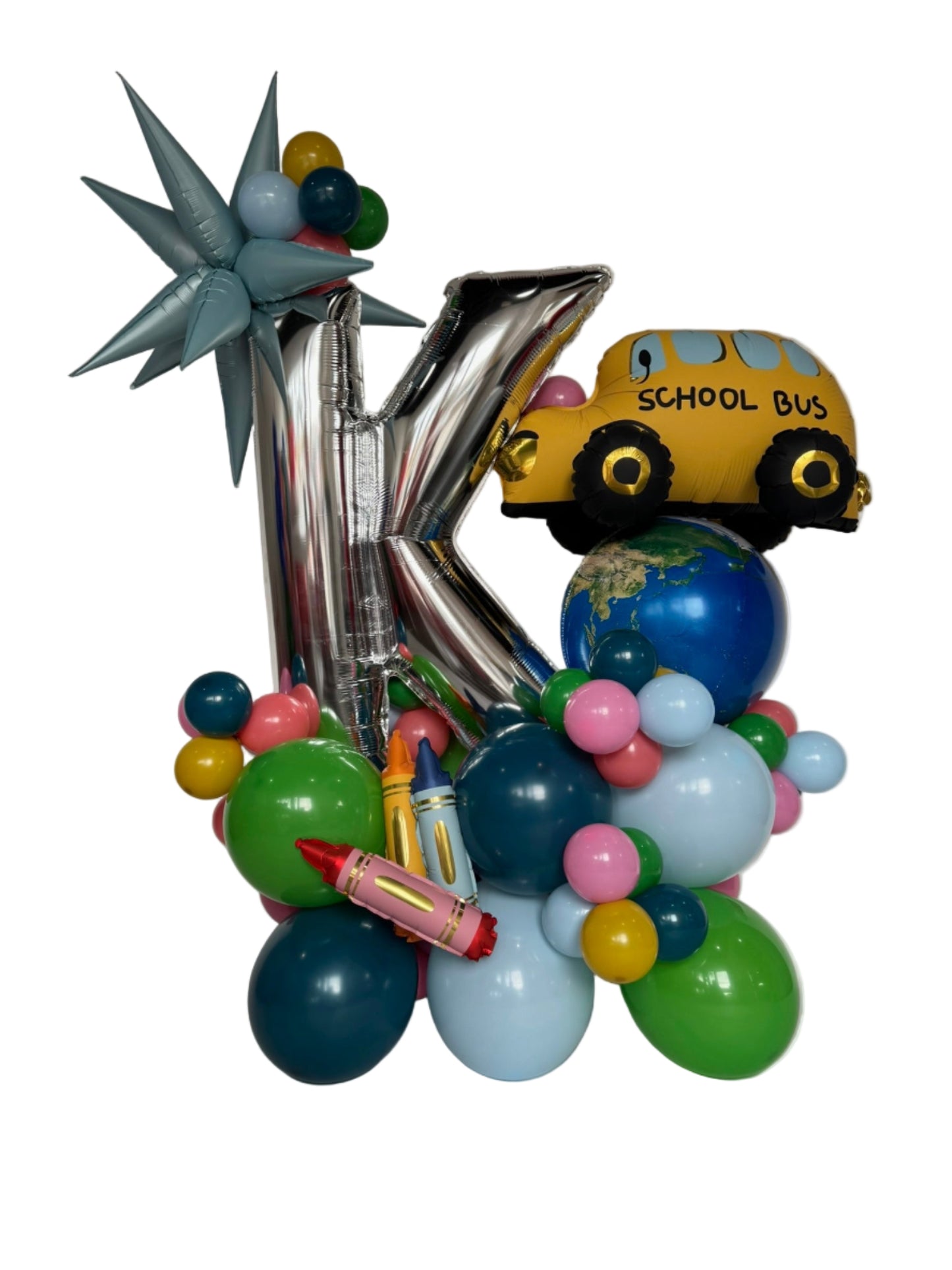 Hop on the fun bus! Our Color Me School-Ready Balloon Sculpture is the ultimate back-to-school balloon sculpture, designed to bring bold color, energy, and excitement to any classroom, school event, or first-day celebration. Featuring a cheerful school bus, giant balloon crayons, and bright balloon accents, this piece makes an unforgettable photo moment.