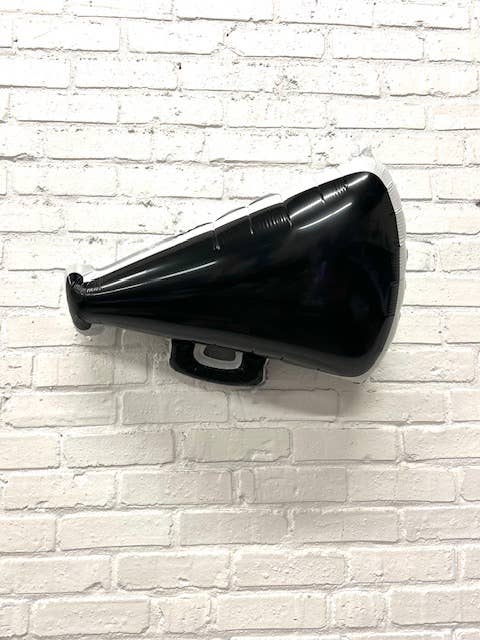 Upgrade your party decor with our 27" Black Cheer Megaphone Balloon.. Need to add some pep to your rally? Look no further than this cheer megaphone balloon. Perfect with air or helium.