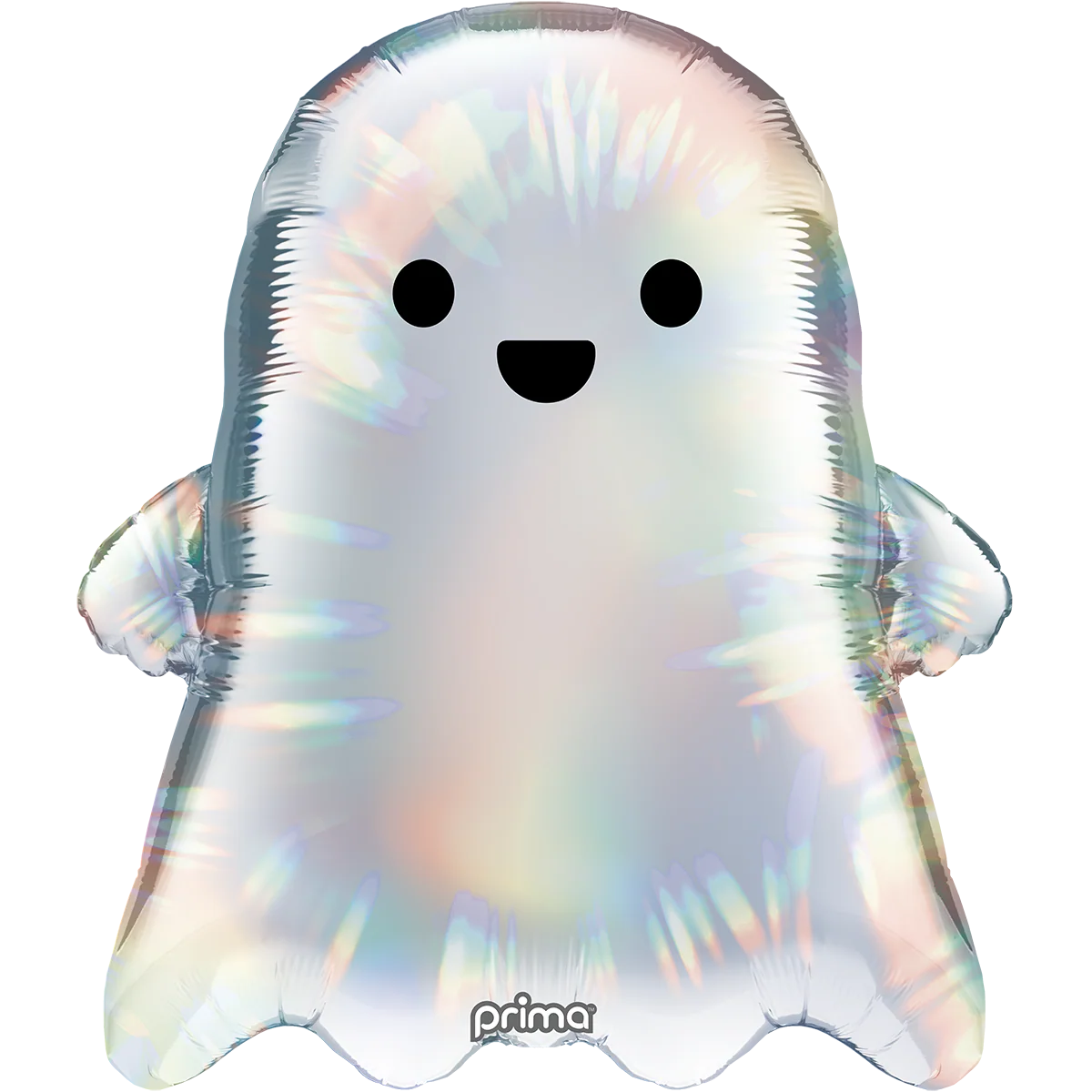 Add a shimmering touch of fun to your spooky celebrations with our 22" Holographic Ghost-Shaped Balloon. This adorable foil balloon captures attention with its grinning ghost face and iridescent holographic finish that shifts in rainbow hues as it catches the light. Its full-body ghost silhouette—complete with little arms—adds charm and whimsy to Halloween décor or themed events.