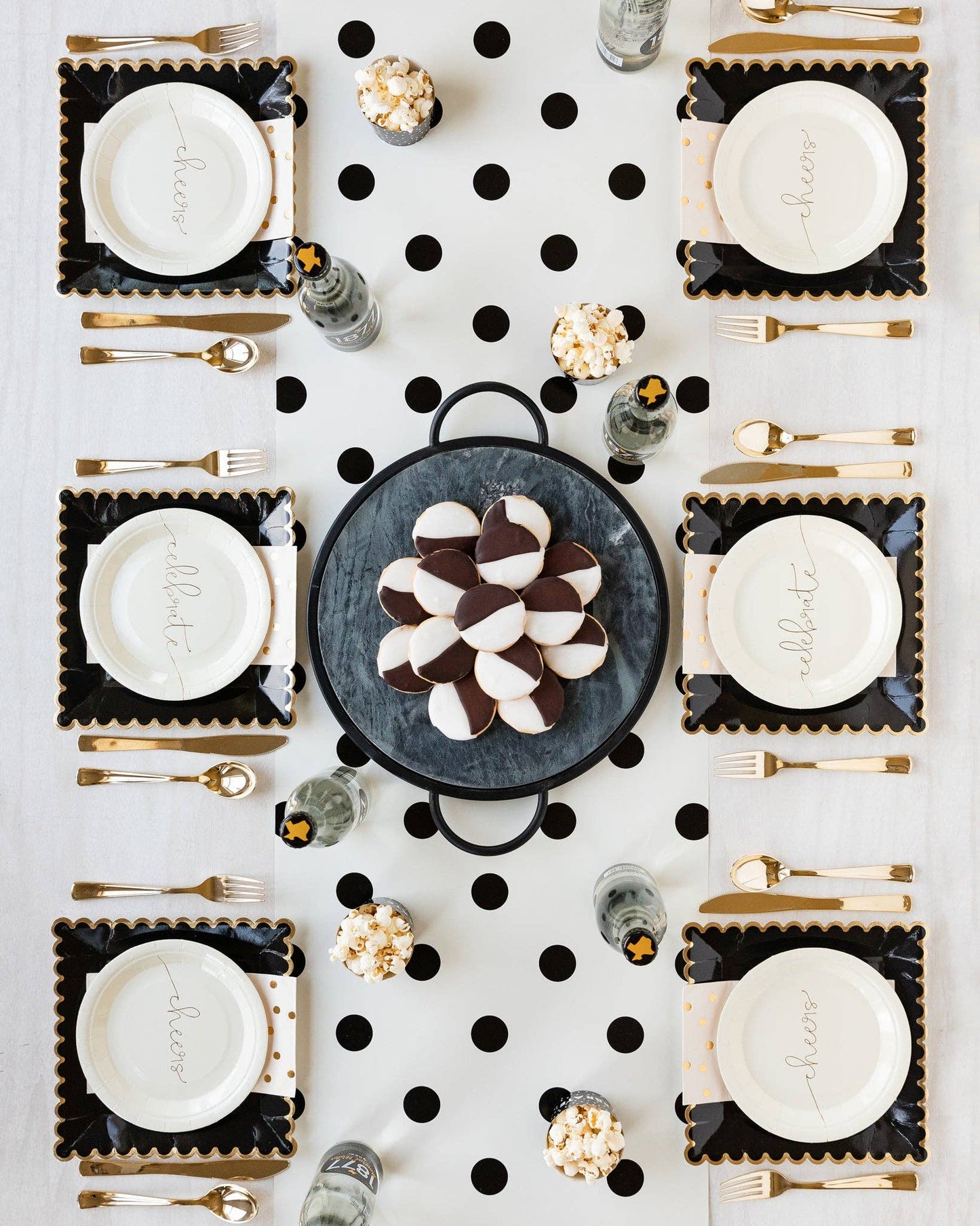 Is your table looking a little bare? Look no further, because this fun cream with black dots paper table runner is the right choice for your next gathering or party. Perfect for any occasion this simple design can really elevate your next event.