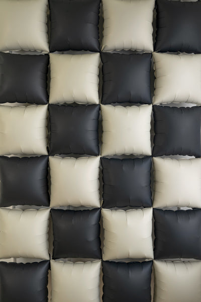 Square foil balloon backdrop - double-sided. The set includes 4 square balloons. Dimensions before inflation are approximately 40 x 40 cm, and dimensions after inflation are 35 x 35 cm. Inflate with air. The set includes a straw. Installation instructions are shown in the graphic below the photo. All square foil curtain balloons available in the offer are the same size, allowing for easy combination of squares.